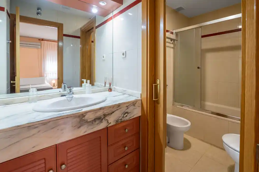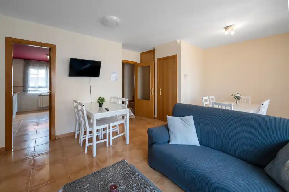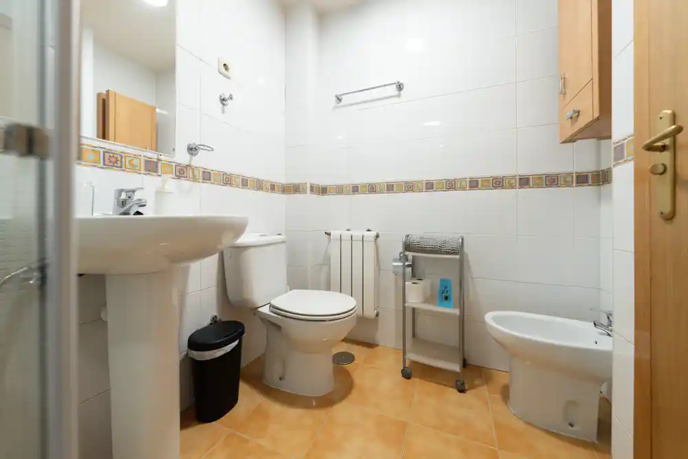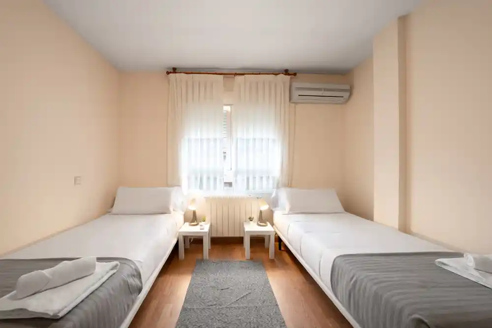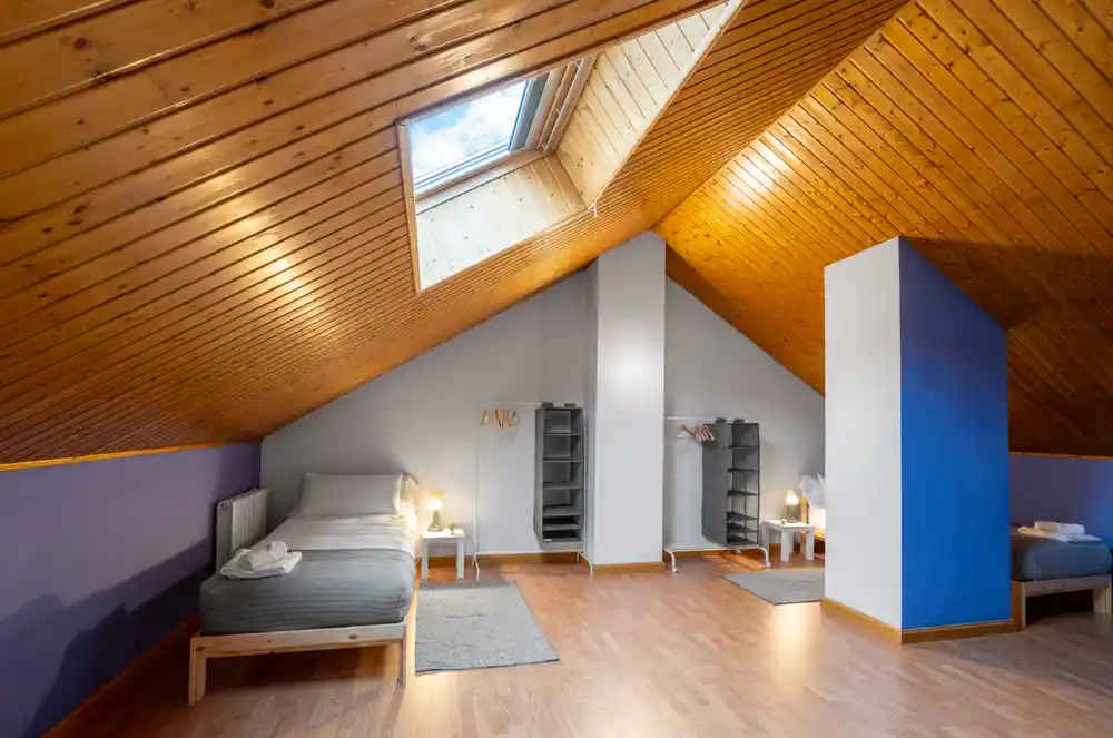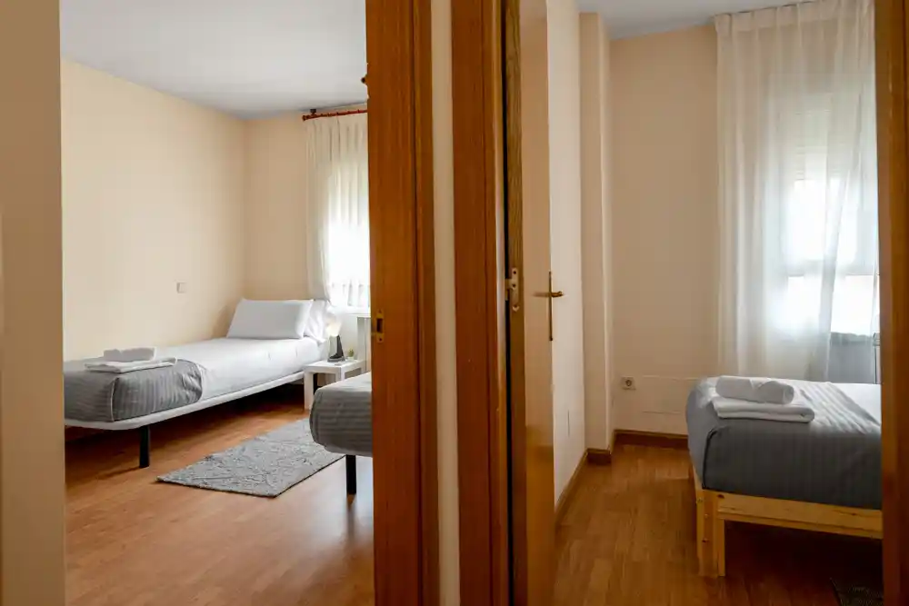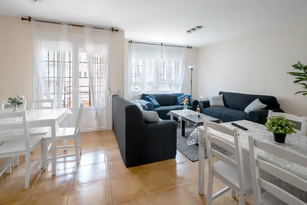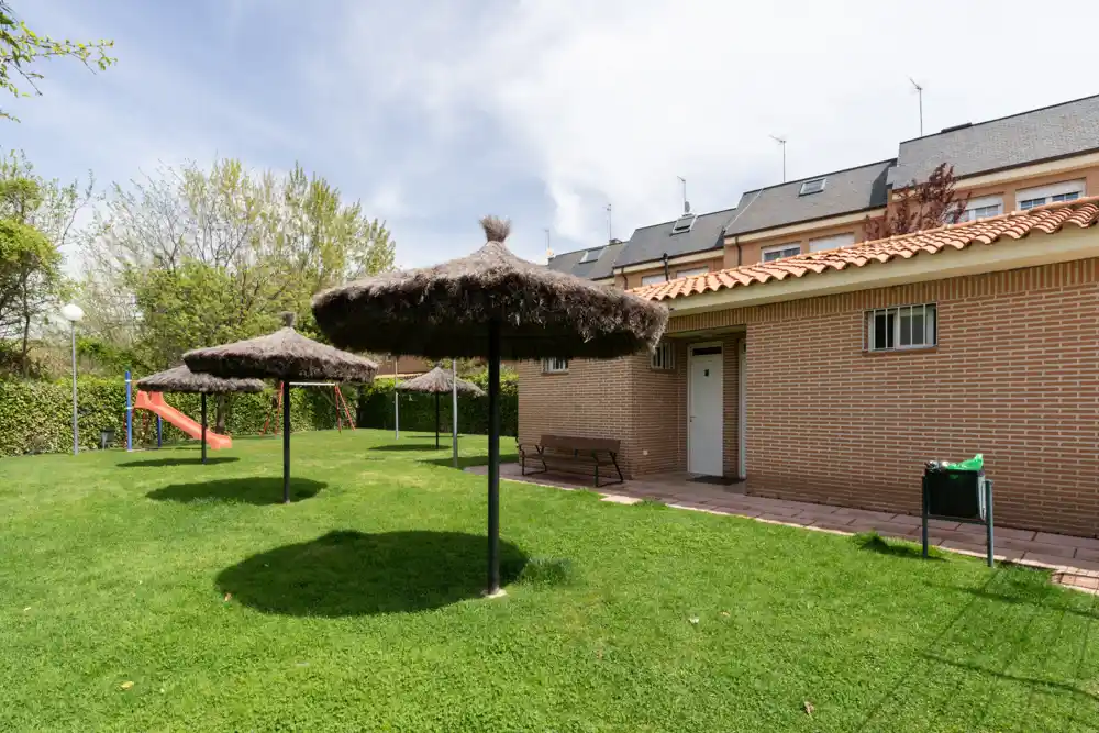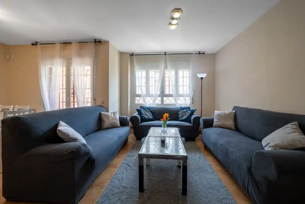 Esta casa es espaciosa y cómoda, ideal para grupos que se desplazan al norte de Madrid. Esta encantadora casa de alquiler temporal en Algete tiene dos baños completos y un aseo, lo que facilita la convivencia. El salón es amplio, con tres sofás de dos plazas. Dispone de terraza con mesa y bancos, jardín y una piscina comunitaria para los meses calurosos.